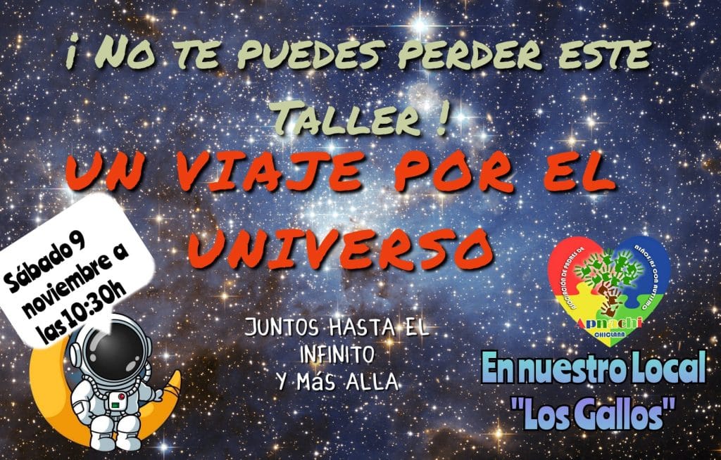 El próximo sábado 9 de noviembre a las 10:30 h. puedes disfrutar de nuestro taller: UN VIAJE POR EL UNIVERSO.